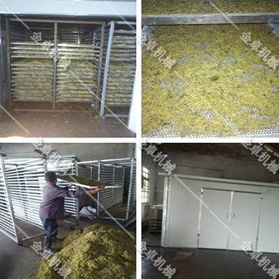 一步:將金銀花烘干房的預(yù)熱溫度設(shè)定為35-40℃左右,然后將擺好金銀花的物料架推入烘干房,然后提升5℃,加大排濕,時(shí)間5小時(shí)左右。